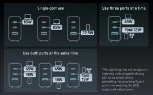 چند دستگاه را با هم تقویت کنید: با خروجی سه پورت 2C1A حداکثر 3 دستگاه را همزمان تقویت کنید. دیگر خبری از پریزهای درهم ریخته یا سیم های درهم نیست. در مجموع توان 65 وات به طور موثر از طریق 3 پورت جریان می یابد و اطمینان حاصل می کند که هر دستگاه شارژ بهینه را دریافت می کند.