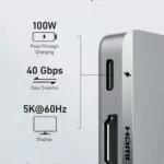 - سرعت بالا: پورت Thunderbolt 3 USB-C این هاب، انتقال داده با سرعتی باورنکردنی را فراهم میکند. این ویژگی برای کار با فایلهای بزرگ، ویرایش ویدئو و اجرای برنامههای سنگین بسیار مفید است.